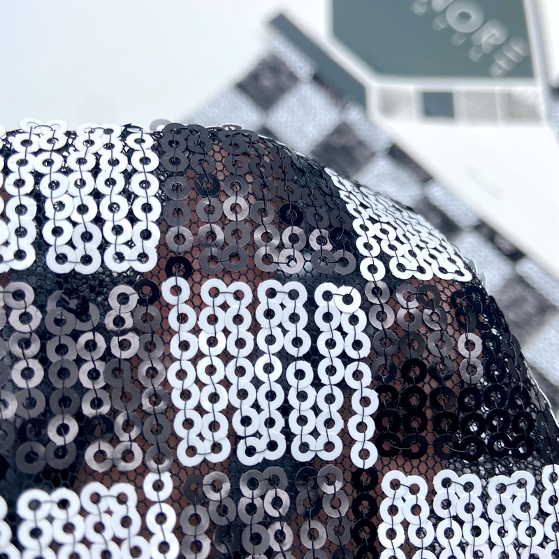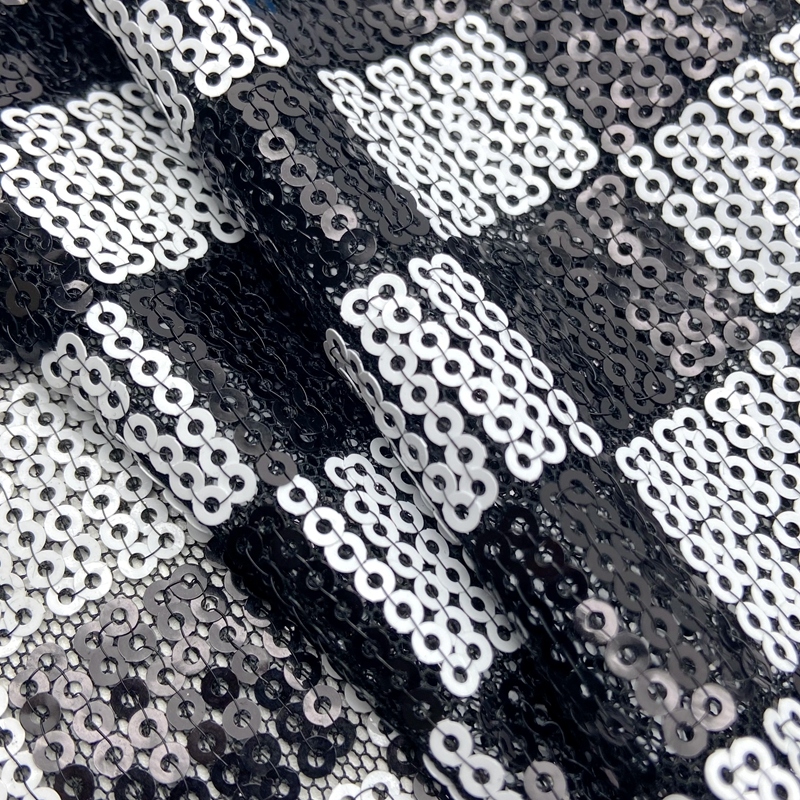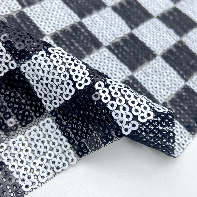 Checkerboard Design Mesh Embroidery Sequin Fabric
